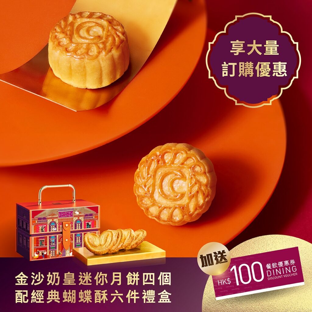 | 國金軒 | 金沙奶皇迷你月餅、福滿星輝燈影禮盒,內含創新蔓越莓太雕酒香與人氣開心果等口味 | 金沙奶皇迷你月餅:HK$348 福滿星輝燈影禮盒:HK$758 | 金沙奶皇迷你月餅:HK$508 福滿星輝燈影禮盒:HK$958 | 桃山皮系列口味獨特創新,啱晒送給年輕朋友,想有驚喜可以揀佢。 |